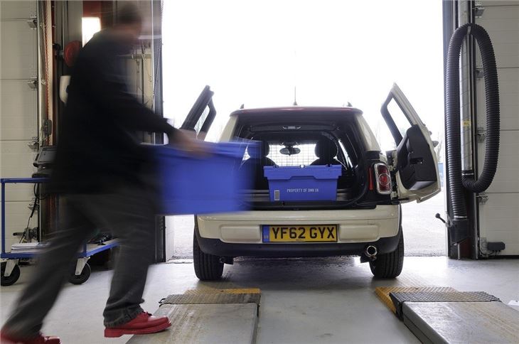 And that's why we're here at Wollaston MINI at 9.00am, clogging up the service and parts department's car park, waiting for the go-ahead from its logistics manager. As we wait to be despatched on the first job of the day, back doors open, a BMW 760Li glides to a halt alongside. The driver pops his head out of the window and asks, 'are these MINIs any good?'