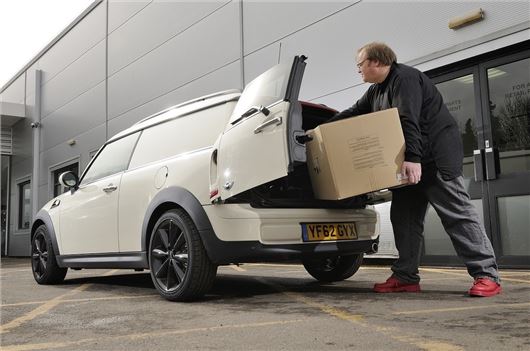 Time for the first delivery, and it's a box of servicing parts for a garage on the other side of the county. The guys in despatch have carefully packaged it up for me, with instructions not to rush. The first thing that strikes me about loading up the MINI is that although the split rear doors look fun, they're actually serving a rather small opening. Taller drivers will have to bend down in order to get their payload in - and if it's heavy, that might not be very practical.