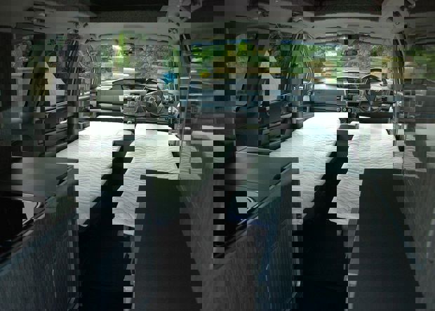 The driver and passenger seats can swivel 180 degrees, allowing the occupants to stretch out and relax when the van is parked up. The seats can also be folded to create twin beds, with in-fill cushions and memory foam mattresses.
