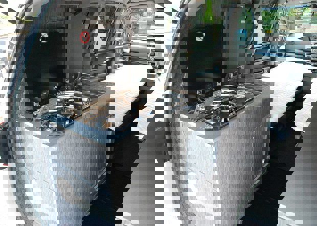 The interior has been completely redesigned by British camper van specialist Wellhouse Leisure, with a colour-matched elevating roof and a sliding glass top gas hob, which can be operated inside or outside the van. The cabin also gets a 25 litre fridge, fresh and waste water tanks and a rear tailgate awning.