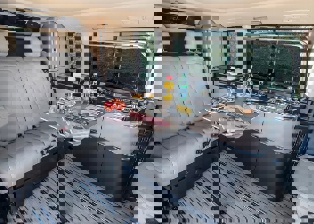 All vans get external connections for power and fresh water, with the latter providing a supply for the compact sink and taps located next to the gas hob. The leather interior also gets swivelling driver and passenger seats, a foldable table and three-zone climate control. A removable camping table plus two chairs, with storage bag are located in the boot.