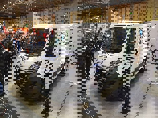 The prototype electric vans unveiled at the Commercial Vehicle Show 2019 at Birmingham's NEC are powered by a 44kWh battery packs located under the loadspace floor. The electric motor produces 96PS and is limited to a top speed of 55mph to maximise urban battery performance.
