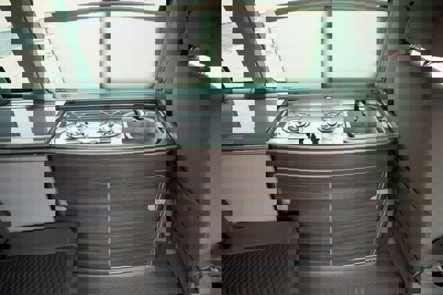 It remains a quality environment - wood veneered, easy to use, hefty and surprisingly adept at swallowing oddments. There’s a 30-litre fresh water tank and another of identical volume for waste, while the fridge stays at 42 litres – big enough for a good couple of days’ worth of food.